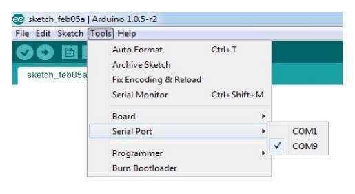 8. Also select the serial port from the tools menu (see the image below).