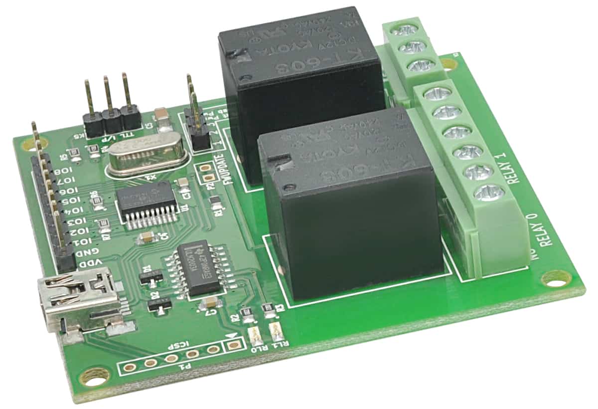 This product has two onboard relays and associated drivers capable of controlling a variety of devices including lamps, motors, locks, etc… (Please see recommendations for using this product with inductive loads elsewhere in this document). This module also includes General Purpose I/Os, and analog inputs (multiplexed with GPIOs) that can be accessed over the USB interface for extended functionality. The module communicates with host PC over full-speed USB link. When connected to PC, the module will appear as a serial port in Windows Device Manager (or a serial tty device in Linux and Mac).