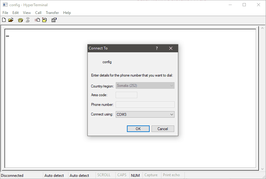 - Open Hyper Terminal and enter the IP address corresponding to the module, leave the port number as 23.