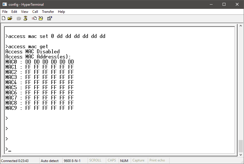 | MAC0 to MAC9 | FF FF FF FF FF FF |