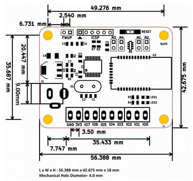 This module has 8 onboard General purposes I/Os multiplexed with 6 Analog Inputs, each connected to individual screw terminals and associated drivers capable of controlling a large number of devices. The analog inputs (multiplexed with GPIOs) can be accessed over the Bluetooth interface for extended functionality. The module communicates with the host PC over the Bluetooth link. A USB Bluetooth Dongle or Bluetooth integrated PC/Laptop would be sufficient to communicate with this device. Firmware upgrade can be done by using the USB B Mini Breakout Board.