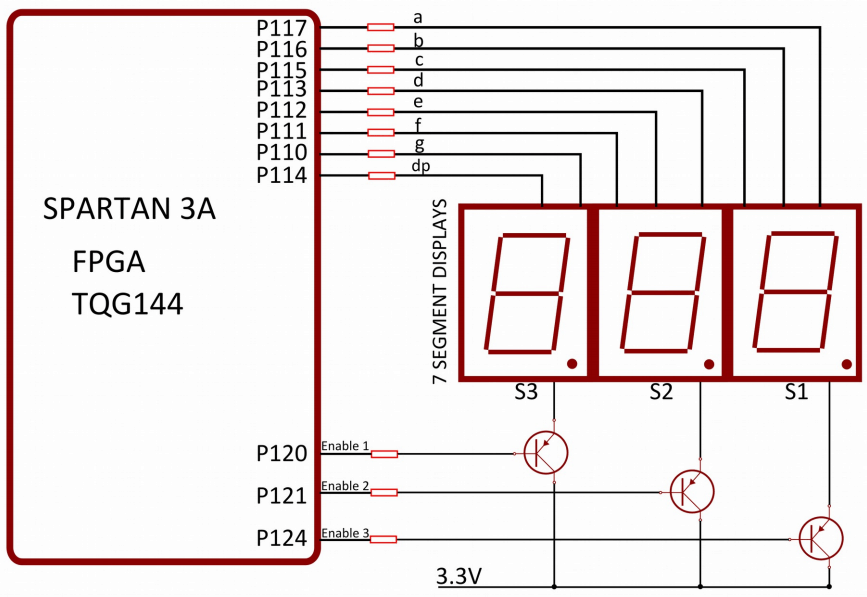 - Three Seven Segment Displays