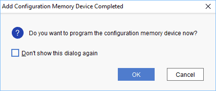 Step 5: Browse to the working .bin file or the .mcs file (whichever applicable) and click OK to program as shown below. If programming is successful, a confirmation message will be displayed.