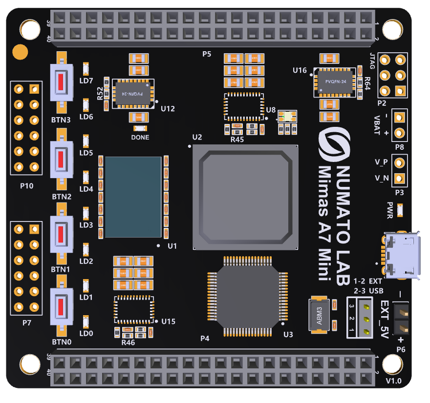 Mimas A7 Mini is an easy to use FPGA Development board featuring Artix 7 FPGA (XC7A35T – FTG256C package) with FTDI’s FT2232H Dual-Channel USB device. It is a Artix-7 based replacement and upgrade of Mimas Spartan 6 FPGA Board. It is specially designed for the development and integration of FPGA based accelerated features to other designs. The USB 2.0 host interface based on popular FT2232H offers high bandwidth data transfer and board programming without the need for any external programming adapters.