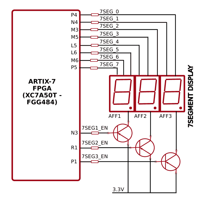 Note: All signals (a, b, c, d, e, f, g, dot, enable 1, enable 2, enable 3) used for controlling 7-Segment display are active-low signals. So, for example, for displaying “8” in display-2, users need to drive Enable 2 to 0 as well as drive signals a, b, c, d, e, f to 0. All other signals need to be driven to 1.