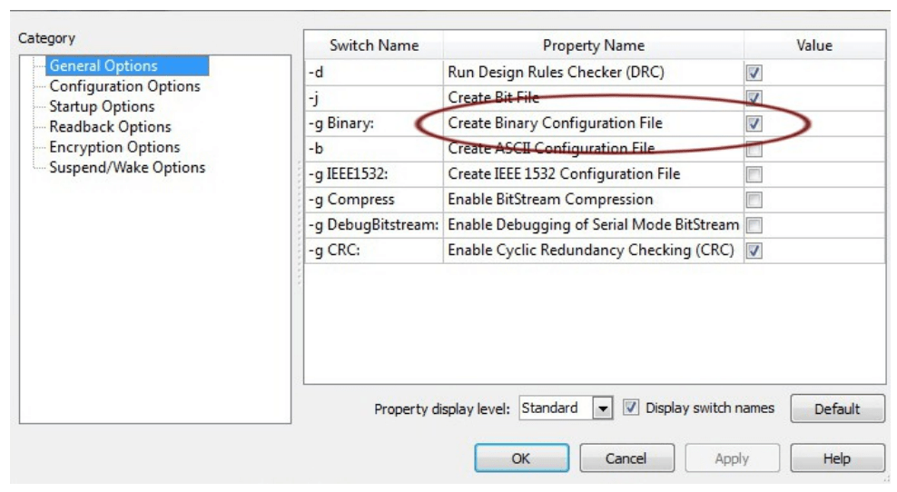 HDL design needs to be converted to a bitstream before it can be programmed to FPGA. Mimas at this time accepts only binary (.bin) bitstream created by Xilinx ISE (http://www.xilinx.com/tools/webpack.htm). Once the HDL is synthesized, it is easy to create a binary bitstream out of it. Please follow the steps below to generate a binary bitstream from your design using ISE Web Pack.