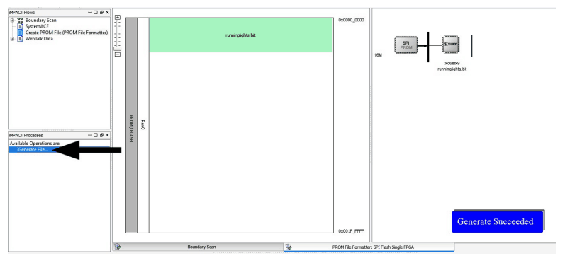 Step 4: Double click on “Generate File”. “Generate Succeeded” will be displayed as shown in fig below if the .mcs file is generated successfully.