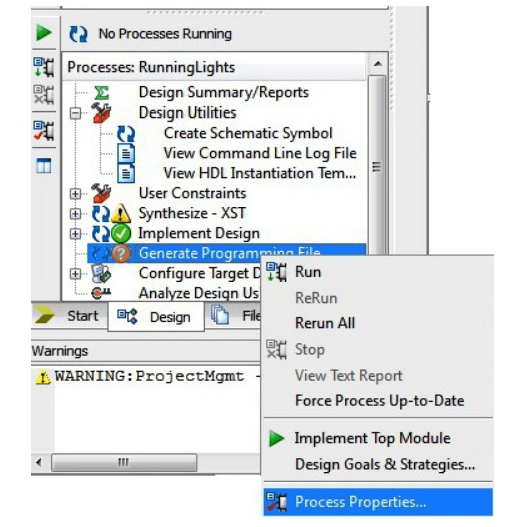 Step 1: Right-click on the “Generate Programming File” option in the “Processes” window.