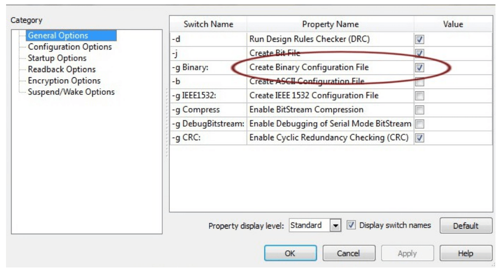 HDL design needs to be converted to a bit stream before it can be programmed to FPGA. MIMAS V2 configuration tool at this time accepts only binary (.bin) bitstream created by XILINX ISE (http://www.xilinx.com/tools/webpack.htm). Once the HDL is synthesized, it is easy to create a binary bitstream out of it. Please follow the steps below to generate a binary bitstream from your design using ISE Web Pack.