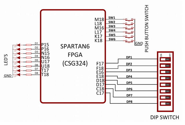 - FPGA: Spartan XC6SLX9 in CSG324 package