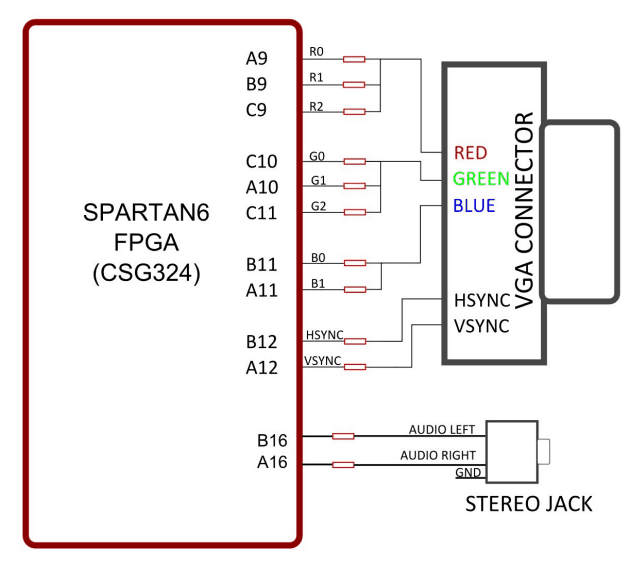 The VGA interface provides this board the ability to generate VGA signals from FPGA and display information on any Display/monitor that supports standard VGA connector. This VGA interface uses resistor network-based DAC for easy code implementation. This 8 bit VGA interface can display up to 256 colors.