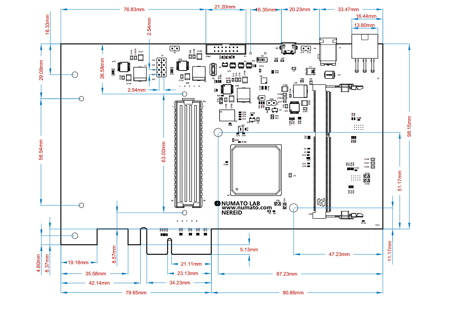 Nereid features a high speed, high pin-count FMC connector which can be used to provide additional features and capabilities to it using custom or commercial off-the-shelf daughter boards. Apart from IOs, 4 GTX lanes are available via FMC connector for custom purposes.