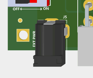 The board is configured to use power from DC power supply by connecting it to the External DC Jack. Please refer to the marking on the board for more details. The external power supply should be 12V, with sufficient current rating (5A max current capacity).