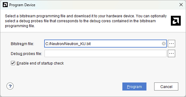 Generating Bitstream for Neutron KU60 FPGA Development Board