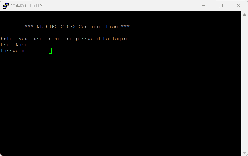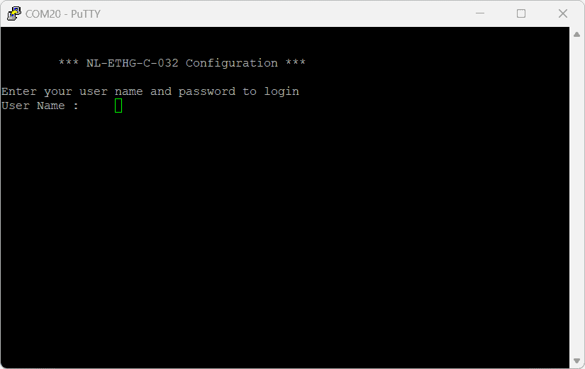 - Open PuTTY and enter the IP address corresponding to the module, leaving the port number as 23.