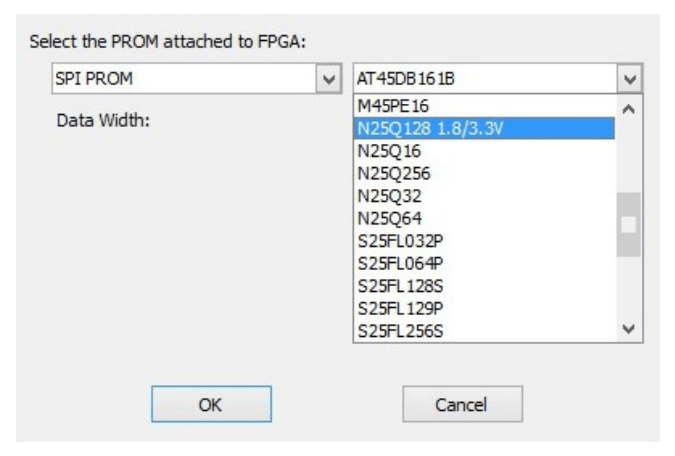 Step 3: Select the “.mcs” file we already created and click OK. Now choose “N25Q128” in the dialogue box appeared, then click OK.