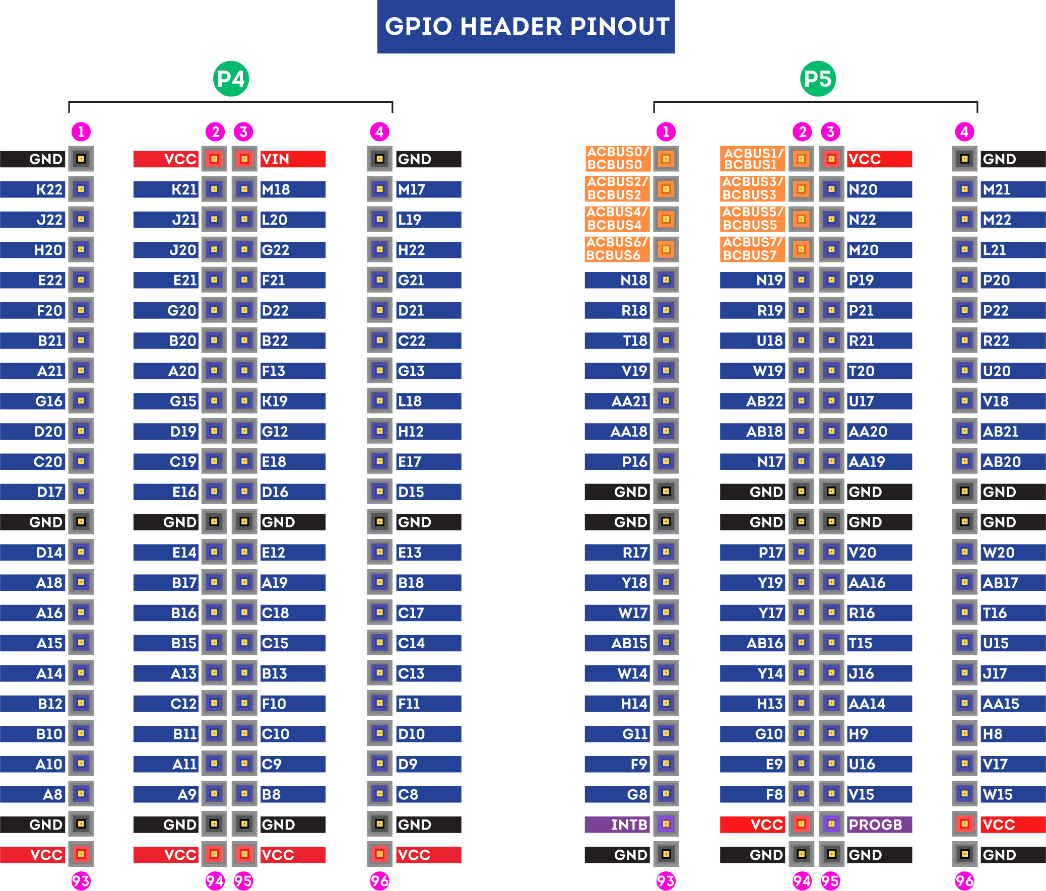 This device is equipped with a maximum 150 user IO pins that can be used for various custom applications. All user IOs are length matched and can be used as differential pairs.