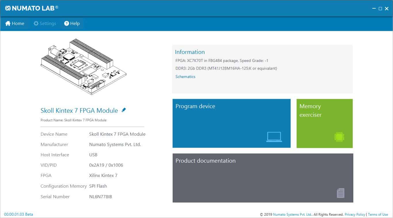 The Linux ships with the drivers required for Skoll Kintex 7 FPGA Module. It should be enough to run the following two commands in the terminal: