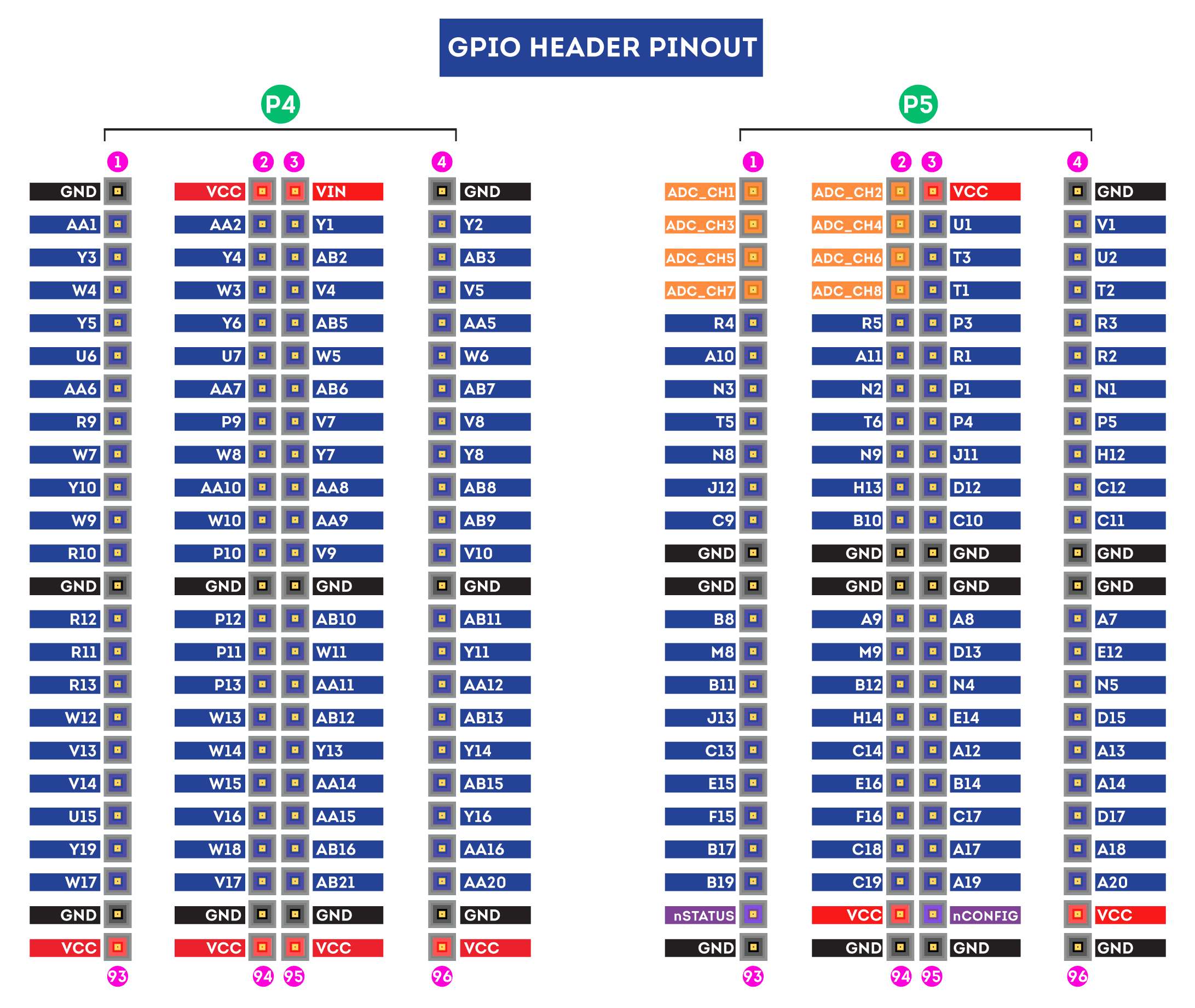 | Pin No. On The Header | 10M50DA (F484) Pin No. | Pin No. On The Header | 10M50DA (F484) Pin No. |