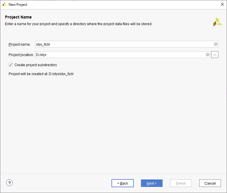 Open Vivado Design Suite, go to File->Project->New. The New Project window will open. Click Next.