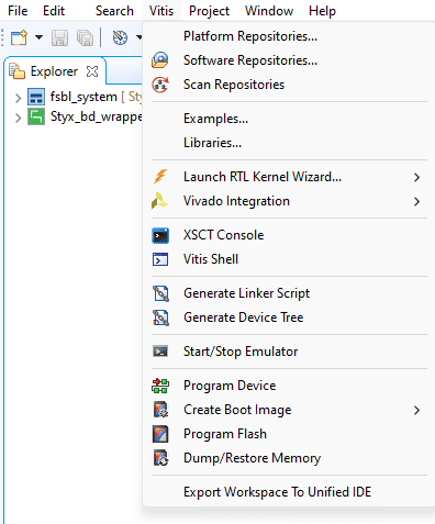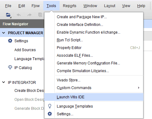 Note: In Vivado 2023.2, accessing Vitis via the tools menu inadvertently launches Vitis Unified instead of Vitis Classic, which is our preferred tool for project creation. To utilize Vitis Classic, it is necessary to launch it separately. This differentiation is applicable exclusively to versions released from 2023.2 onwards.