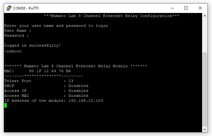 The simple set of ASCII based human-readable command set supported by this module makes controlling relays/GPIOs via TELNET protocol very easy.