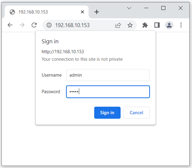 - Enter the default username and password then click Sign in.