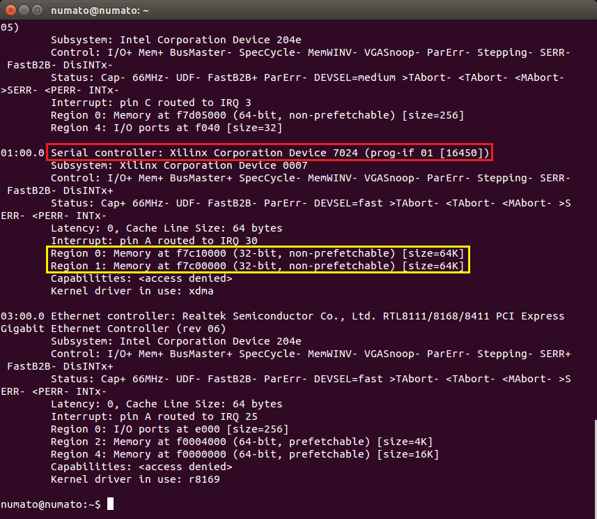 You can take note of the PCIe base addresses which can be seen as in the image above. We will use this address to write data to Aller over PCIe.