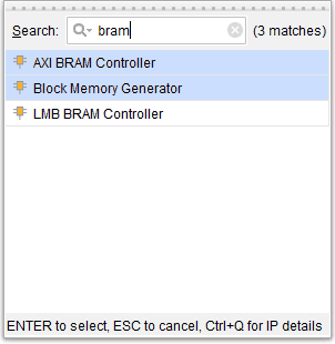 Now again click on “Add IP”, search for BRAM and double click on “AXI BRAM Controller” and “Block Memory Generator” to add the IPs to the design.