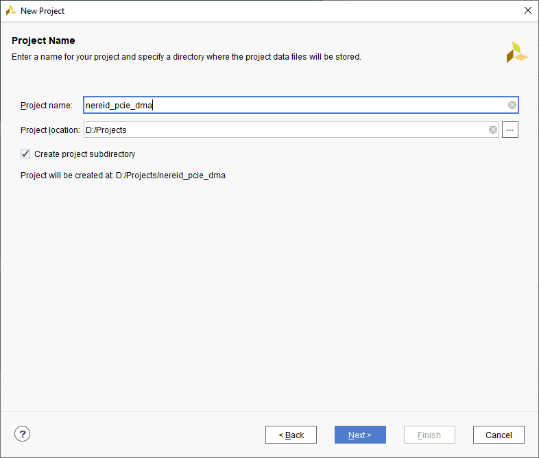 Open Vivado and select “Create Project” from the “Quick Start” section.