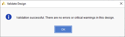 Validate the design to check if the block design has any errors. If the validation was successful, you should get a message as shown in the image below: