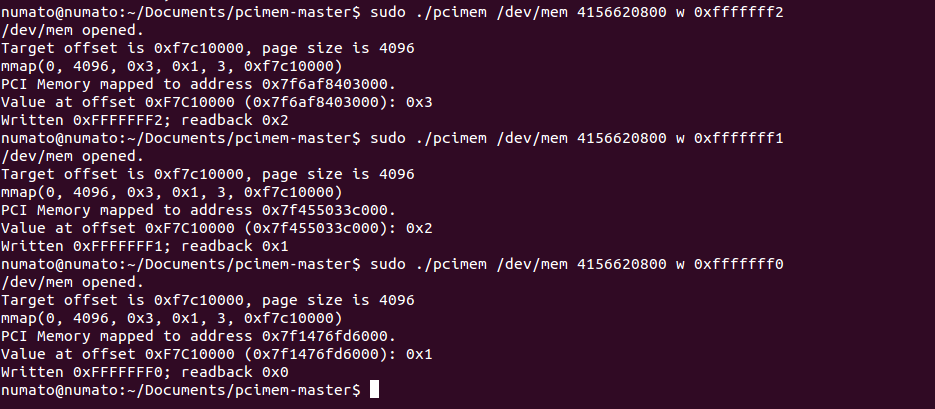 sudo ./pcimem /dev/mem 4156620800 w 0xfffffff2