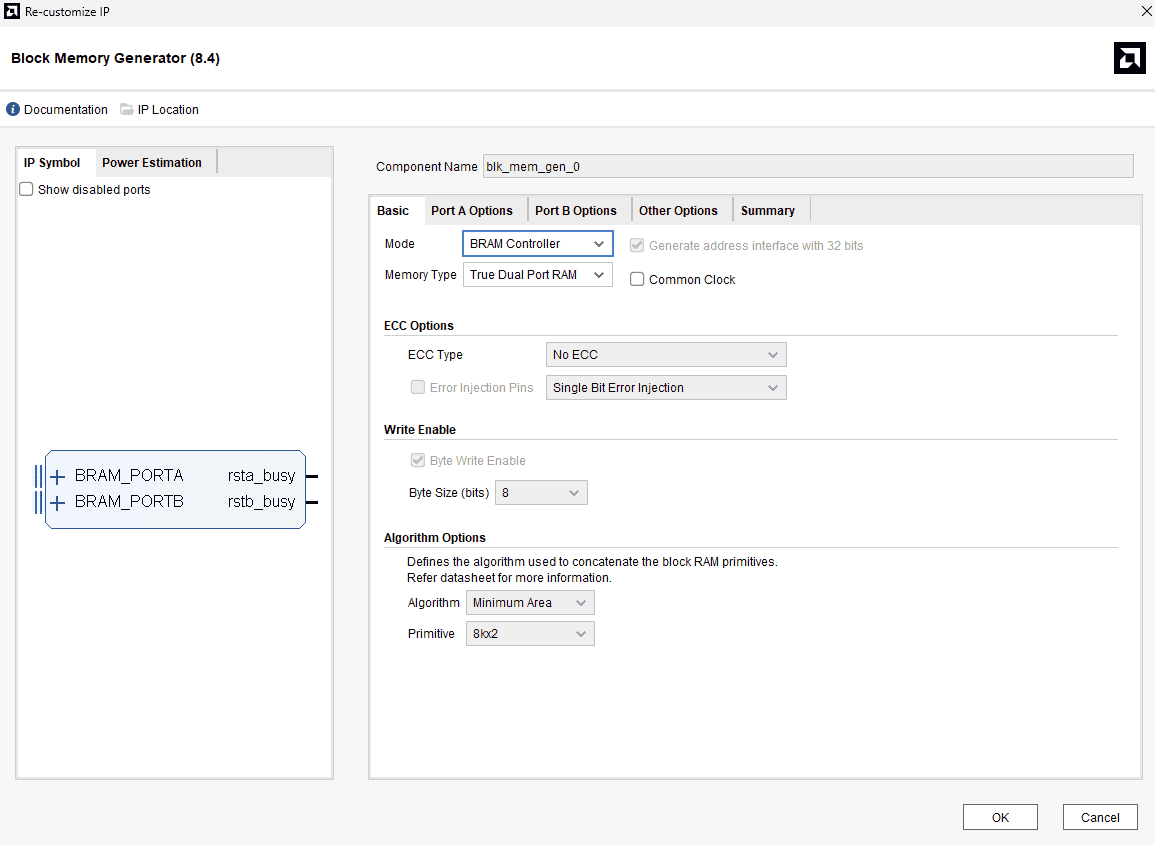 - In the “Basic” tab, select the Memory Type as “True Dual-Port RAM”.