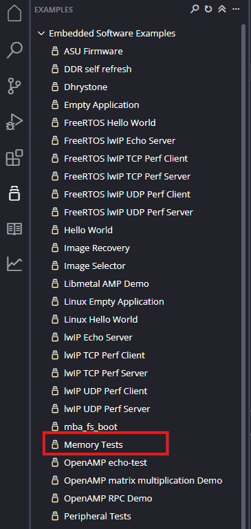 Next create the DDR4_test Application component by selecting the “Memory tests” template from the “examples”,