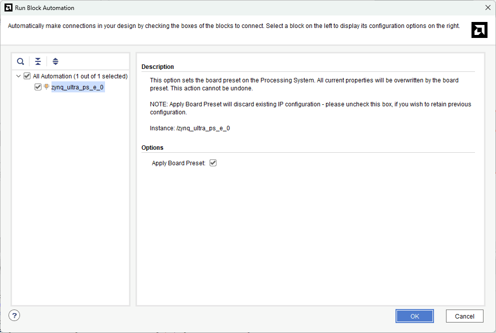 In the “Run Block Automation” window, select the options as in image below and click OK.