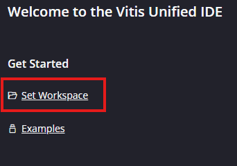 After Vitis Unified IDE window opens, click on “Open Workspace” and select necessary folder to keep the Vitis files.