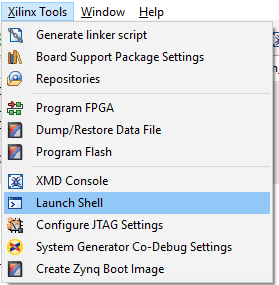 In Xilinx SDK, go to Xilinx Tools -> Launch Shell.