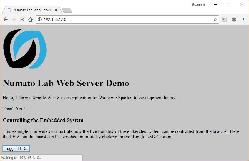 That was it! A simple web server running on Waxwing Spartan 6 Development board. You are encouraged to check out the source code and try to improvise it and add additional capabilities to this example design.