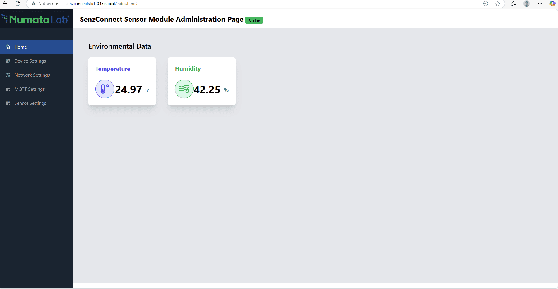 - Open a browser and go to the device dashboard at http://192.168.4.1 to access the configuration portal.