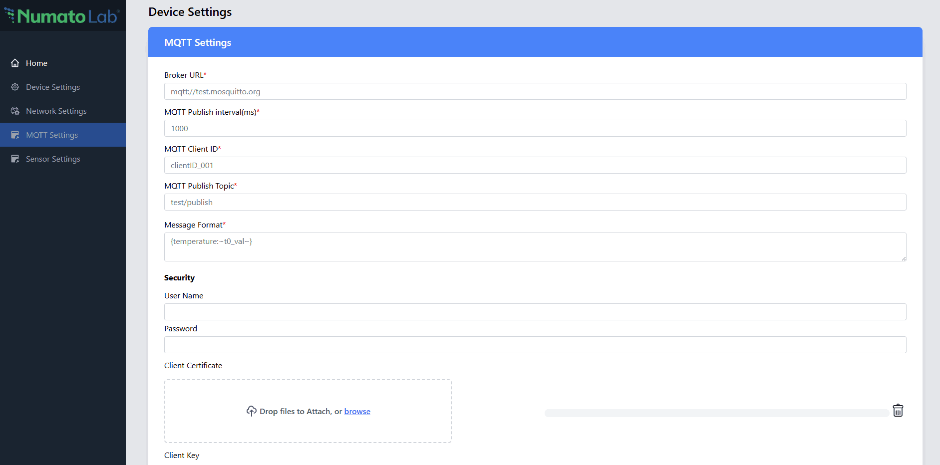 Note: See the user manual for comprehensive setup and troubleshooting instructions.Security - Username: Use the Access Token or MQTT username.