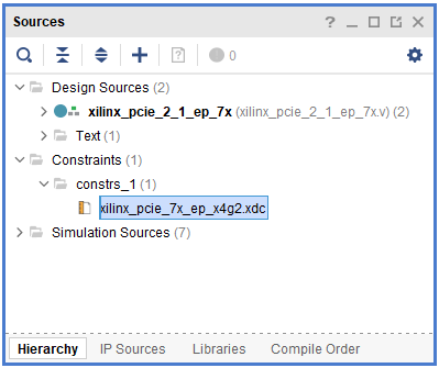 To add this logic in the example design, open the Verilog file from the Design Sources category in the “Sources”.