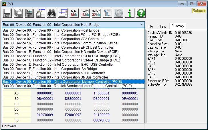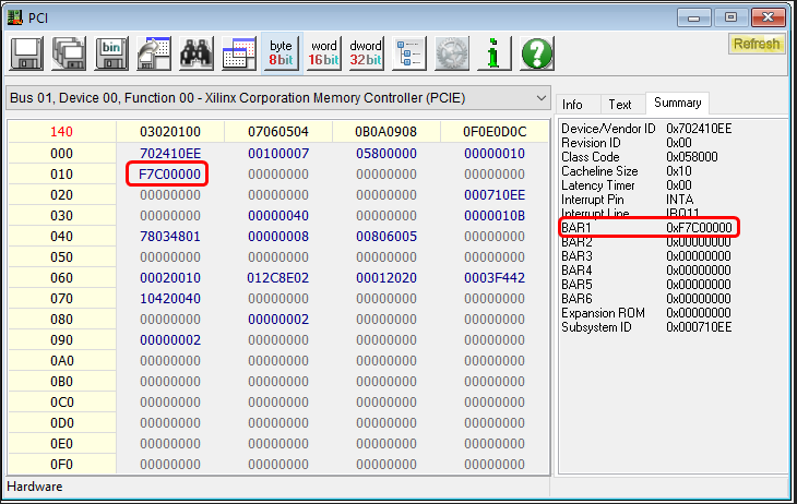 Double-click to open the BAR Address and select any one of the address memory locations and write some data to it. The data is persistent on Aller as long as it is powered up. We can verify it by closing and re-opening the application, which should show the data written previously, indicating that the write operation was successful.