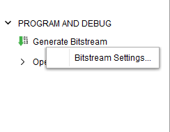 Right-Click on “Generate Bitstream” under the PROGRAM AND DEBUG section of Flow Navigator. and select “Bitstream Settings”.