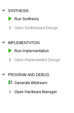 Now, in the Project Manager Tab, click on “Generate Bitstream” under the “PROGRAM AND DEBUG” section to synthesis, implement and to generate the bitstream.