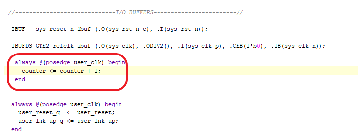 And then add this counter implementation after the I/O BUFFERS instantiation.
