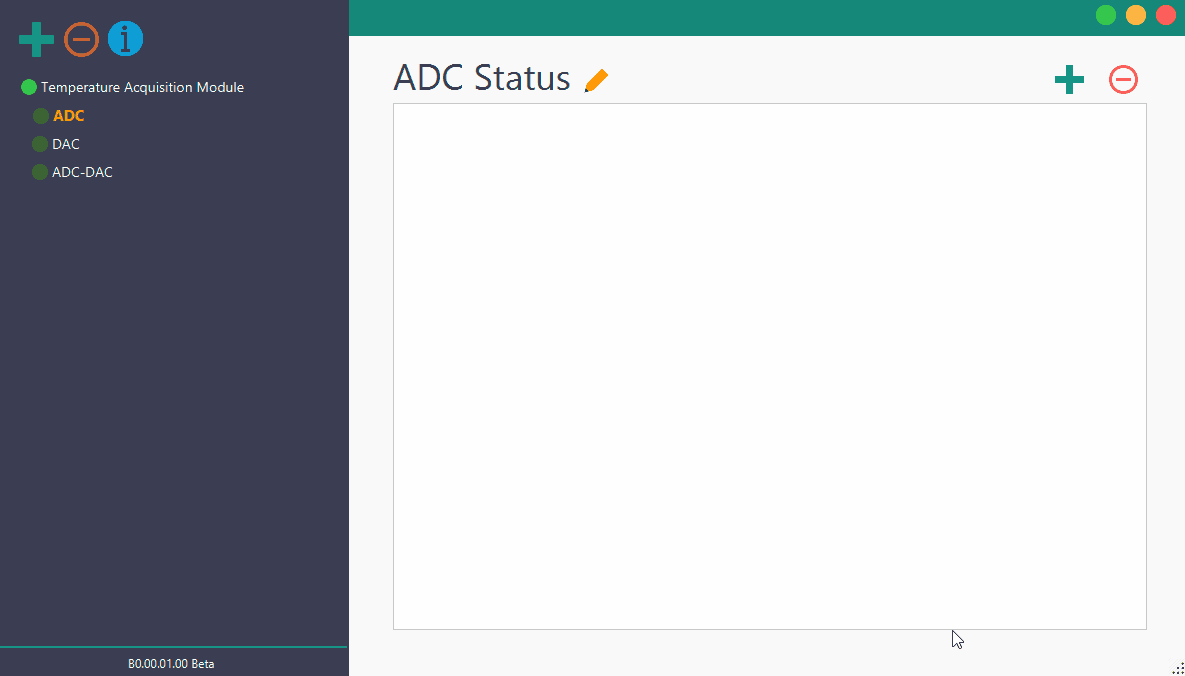 4. Click on the “ADC” object under the newly added device to display “ADC Status” pane.