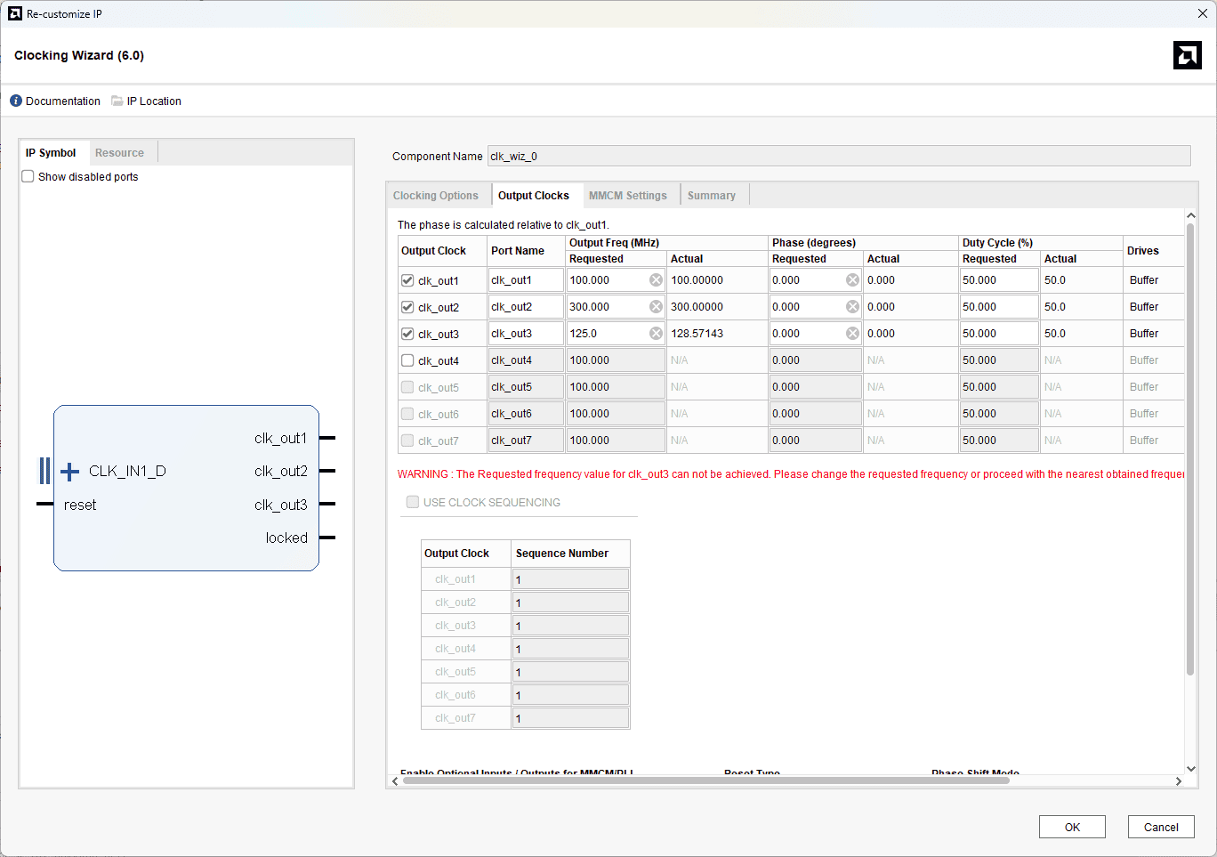 Customize the Clocking Wizard IP as shown in the images below: