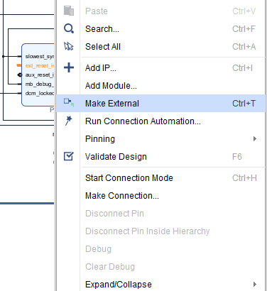 Right-click on the “ext_reset_in” pin and click on Make External.