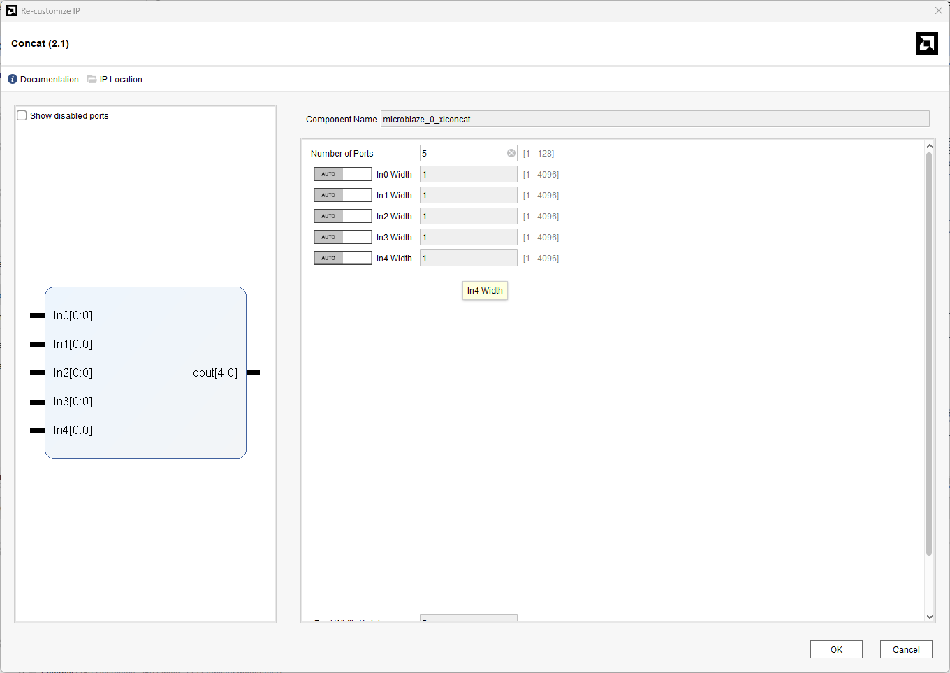 Customize the Concat IP block as shown below.