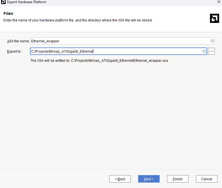 Provide the XSA file name and save it at a suitable location. Click Next and click Finish in the next dialog box.